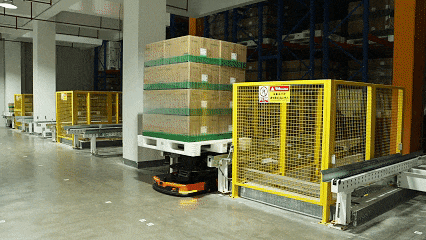 在立庫(kù)巨大的鋼貨架之間,有8條達(dá)60米的狹長(zhǎng)巷道,每條巷道上,都有一位“擎天柱”——堆垛機(jī),它們代替了傳統(tǒng)的人工和高位叉車(chē),在貨架間快速升降穿梭,精準(zhǔn)地從不同儲(chǔ)位取出或放入貨物。地面上,穿梭車(chē)(RGV)和自動(dòng)導(dǎo)引車(chē)(AGV)來(lái)回穿梭,承擔(dān)著物料與成品的運(yùn)輸任務(wù),保障貨物的高效流轉(zhuǎn)。而貨物分揀環(huán)節(jié),則由專(zhuān)業(yè)的機(jī)械手精準(zhǔn)完成。